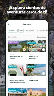 Retos - Colecciona sellos alrededor de la Isla con tu Pasaporte a la Aventura. Mientras más ponches tu pasaporte, más te vas rankeando.