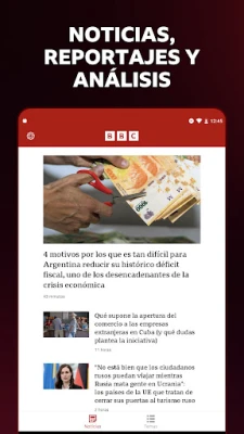 The app is simple to use, with stories in Spanish arranged into categories covering Latest News, Latin America, World, Business, Technology, Science, Health, Society & Culture and Videos.