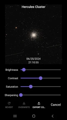 save the final stacked master to the Image Gallery and your device’s camera roll.