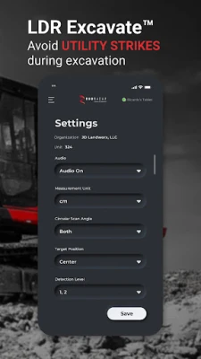 A RodRadar mobile application which is designed to help the excavation team access LDR scan data, in real time, collect soil and utility information and attached images and other relevant information. The collected data, also available through the LDR Insights™ platform, allows the customer to have a comprehensive information of the excavation performed, for immediate and future reference