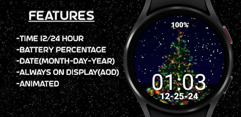 Merry Christmas Tree Lights Xmas Watchface for your Wear OS smartwatch! Watchface is available on devices running Wear OS API level 28 and higher. English watchface only. Thanks and enjoy!