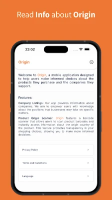 Product Origin Scanner: Origin features a barcode scanner that allows users to scan product barcodes and instantly access information about the origin country of the product. This feature promotes transparency in your shopping choices, allowing you to make more informed decisions.