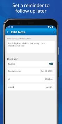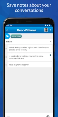 Be more mindful of new relationships and strengthen existing ones. Quickly jot down a person's name and a few notes about your conversation, and assign labels to stay organized. Need to pull up a person's info on the fly? Search by name, label, or notes to find someone lickety-split!